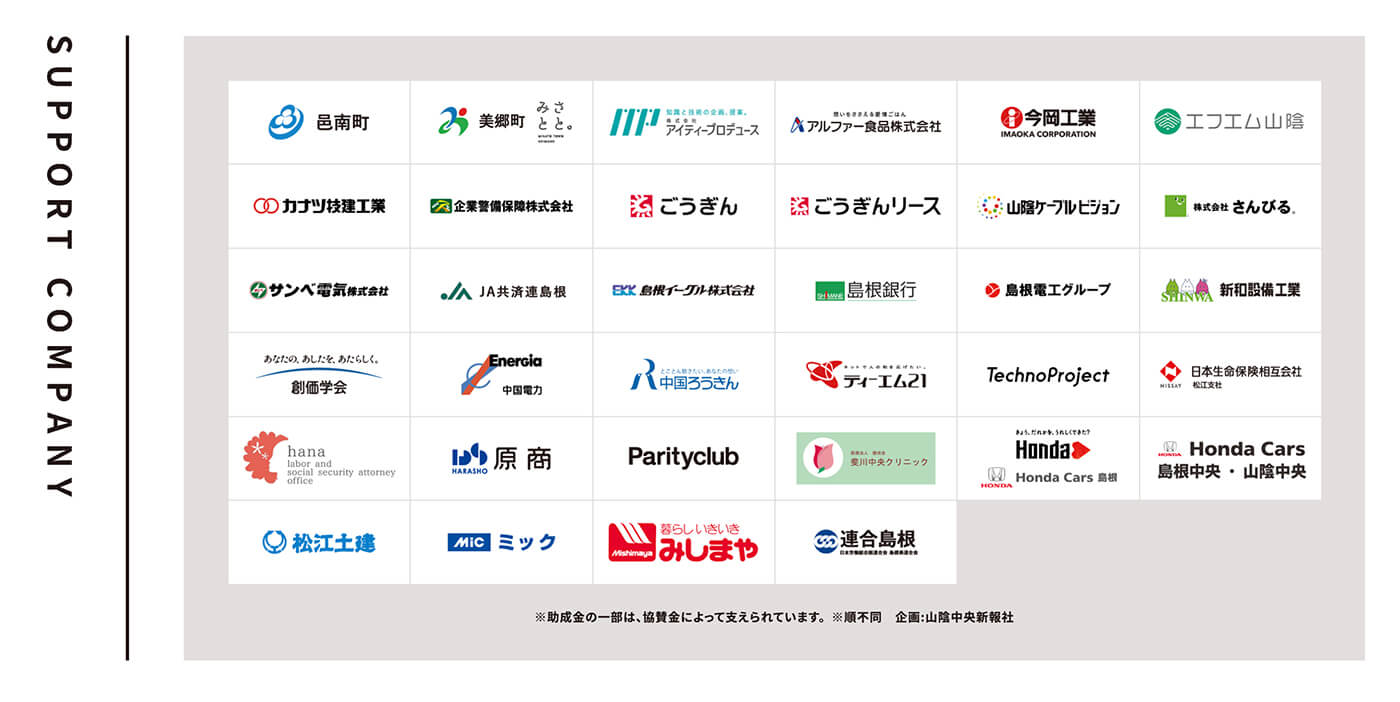この助成金は、島根県内企業・団体から募った協賛金(山陰中央新報社「ミライサポートプログラム」主催)を一部財源にしています。
