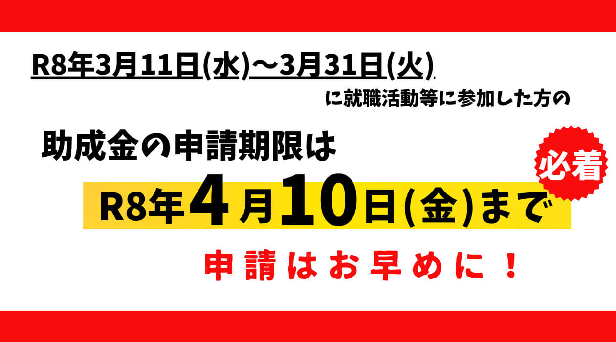 ※2026年3月11日(水)~3月31日(火)に就職活動をした場合は、2026年4月10日(金)が申請締切です。
