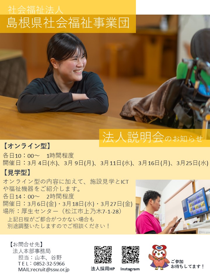 【島根県社会福祉事業団】施設見学型法人説明会