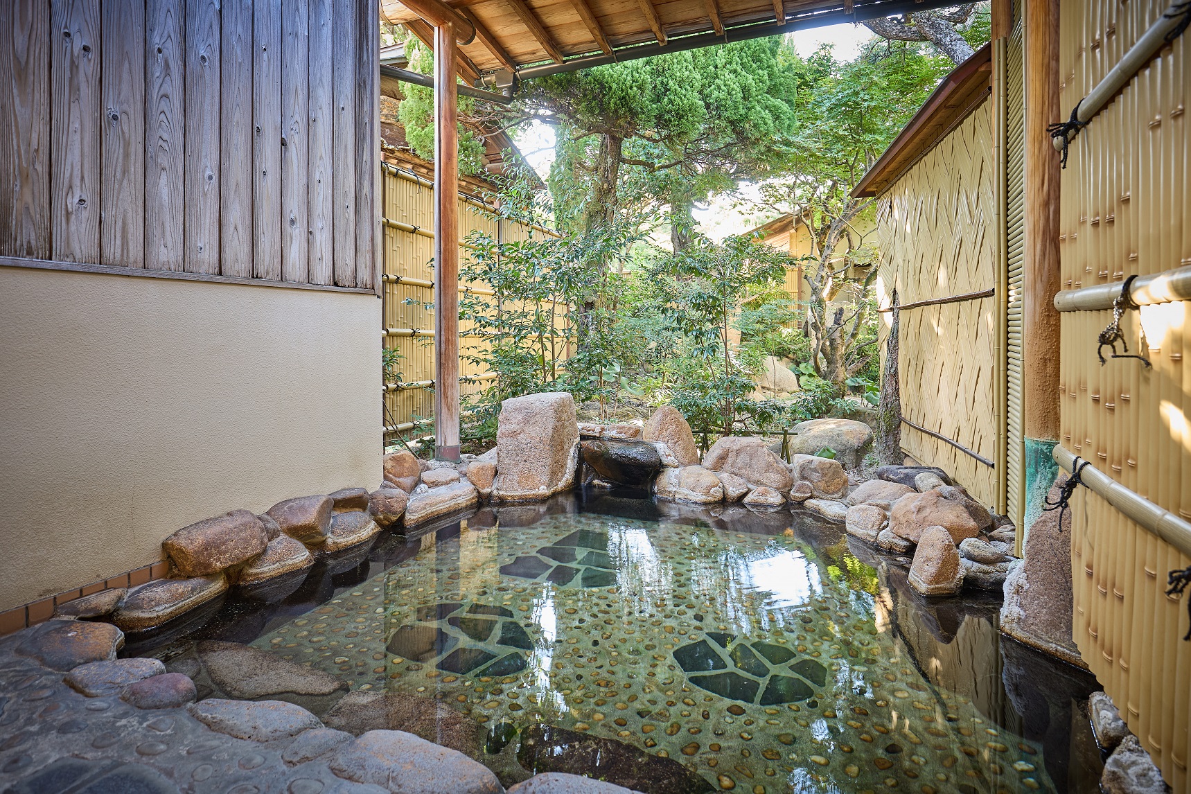 湯量豊富で薬効高い『さぎの湯温泉』を源泉100%かけ流しで利用。お風呂は男女内湯・露天風呂と露天風呂付貸切風呂が1つございます。