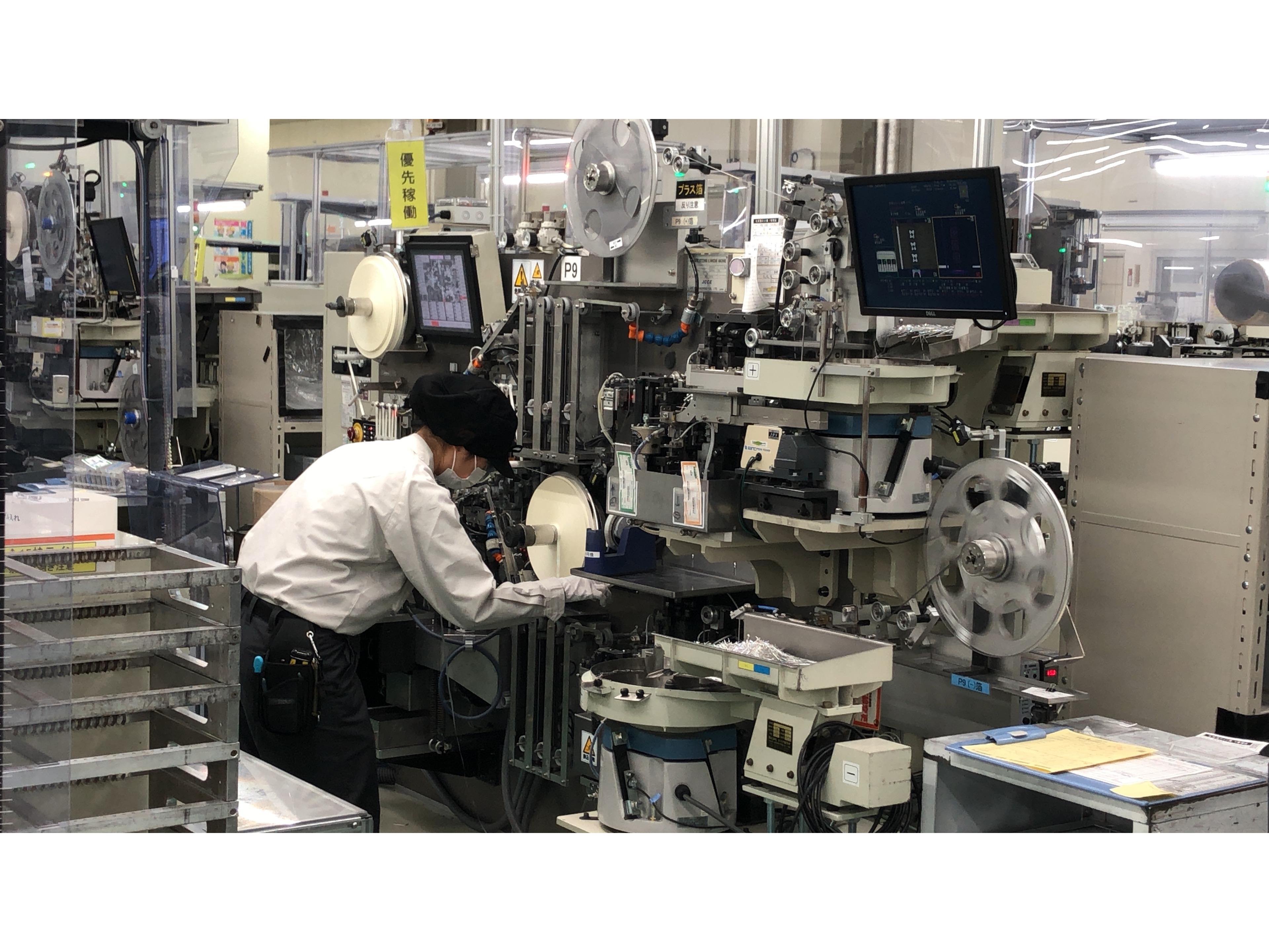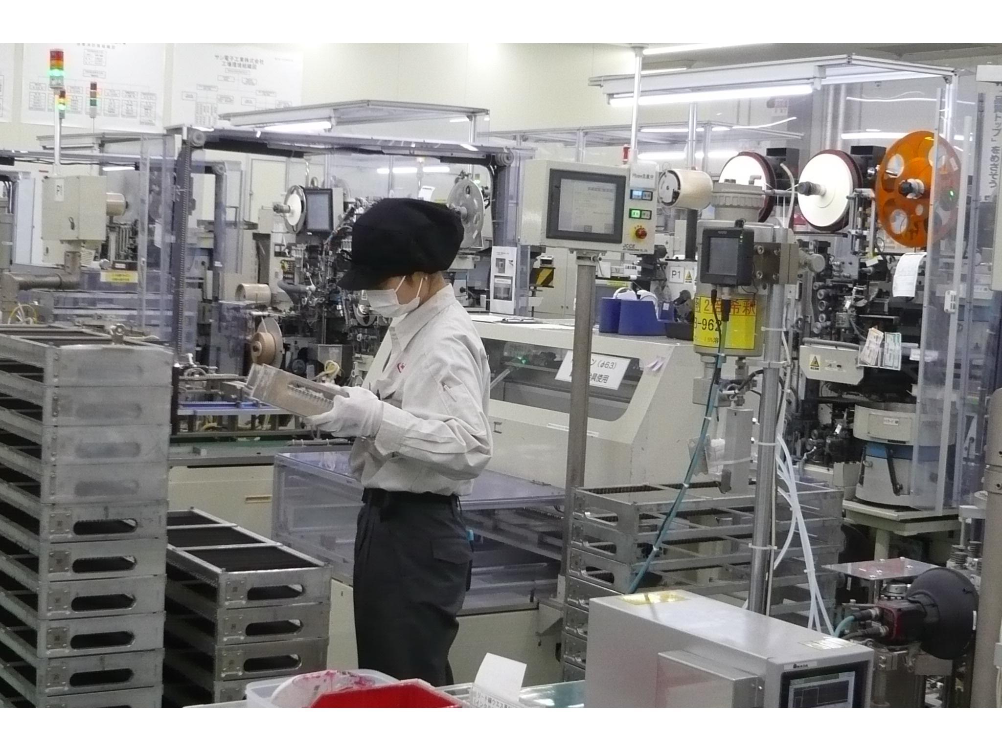 24時間稼働の自動設備を操作し、アルミ電解コンデンサの製造に従事して頂きます。