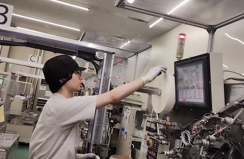 アルミ電解コンデンサの製造設備の操作が主な仕事です。材料を補給し機械設備が電子部品を生産しますので、出来上がりのチェックをします。