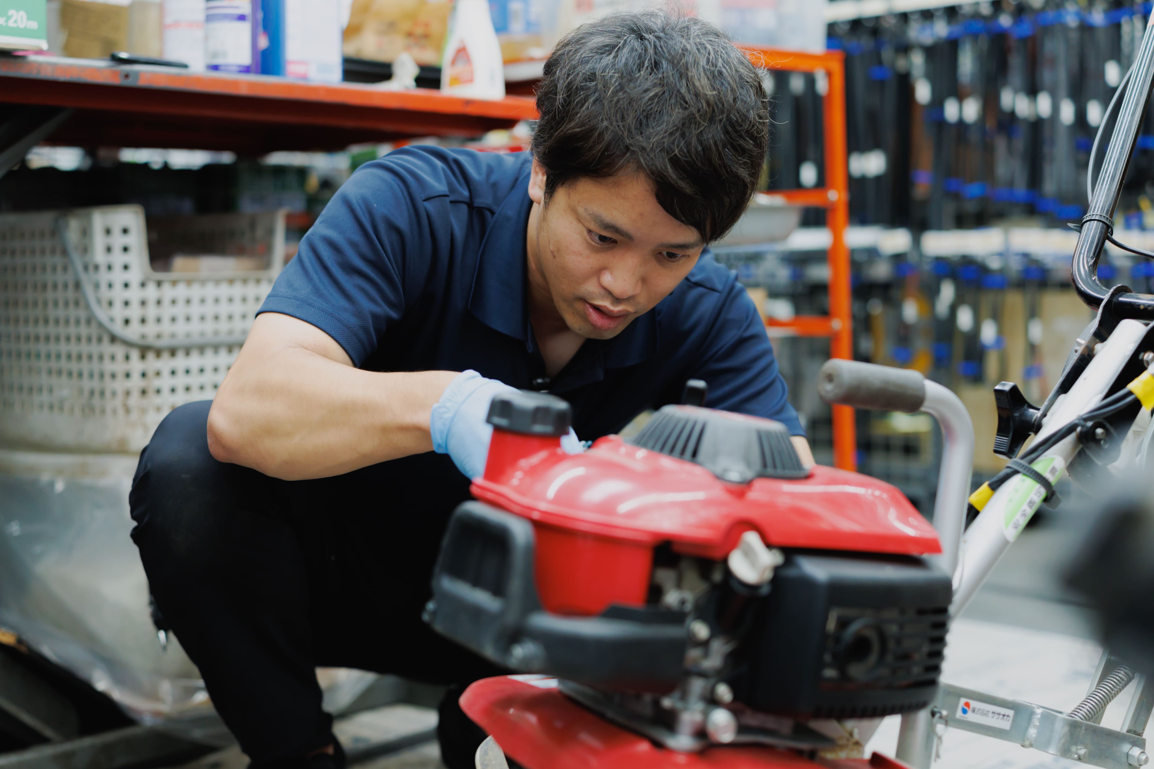 当社は昭和44年にホームセンター事業を開始して以来、中国・近畿地方を中心に店舗を展開しています。経営理念に「地方都市・中山間地・離島のなくてはならないインフラになろう」を掲げ、地域のお客様のニーズに応える存在として、また生活に欠かせないインフラ(生活基盤)として更なる発展を目指しています。その中でも、力を入れているのが「農業・園芸・資材・金物・工具・ワーキングの専門店」としての店づくりです。商品の専門性を高め、地域にあった商品をお勧めできる商品知識、また各種研修で培った販売後の修理技術をもって、安心してお買い上げいただけるよう対応しています。