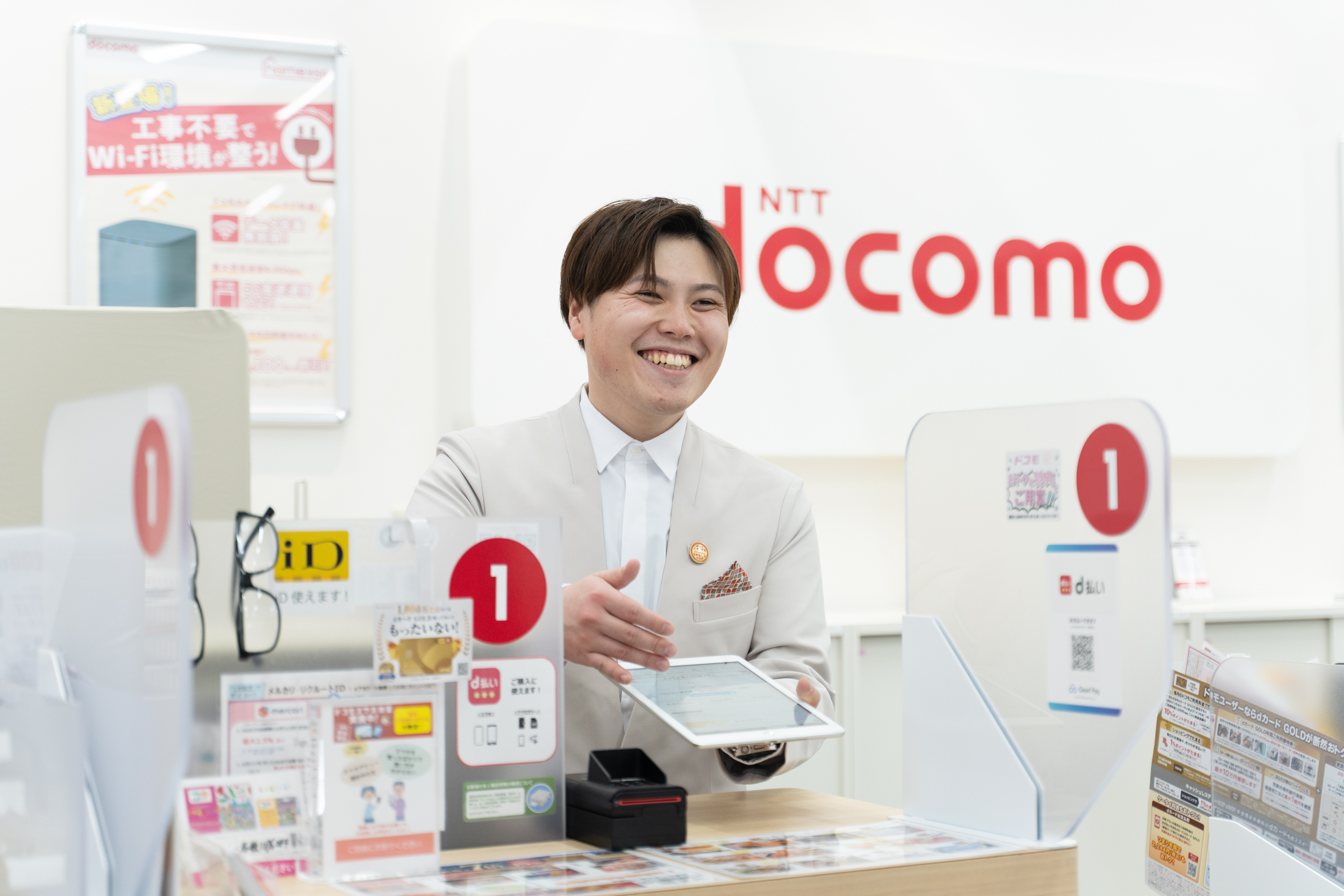 仕事を行うに当たっては、店舗スタッフに加え(株)NTTドコモの強力なバックアップがありますので、安心してがんばれます。