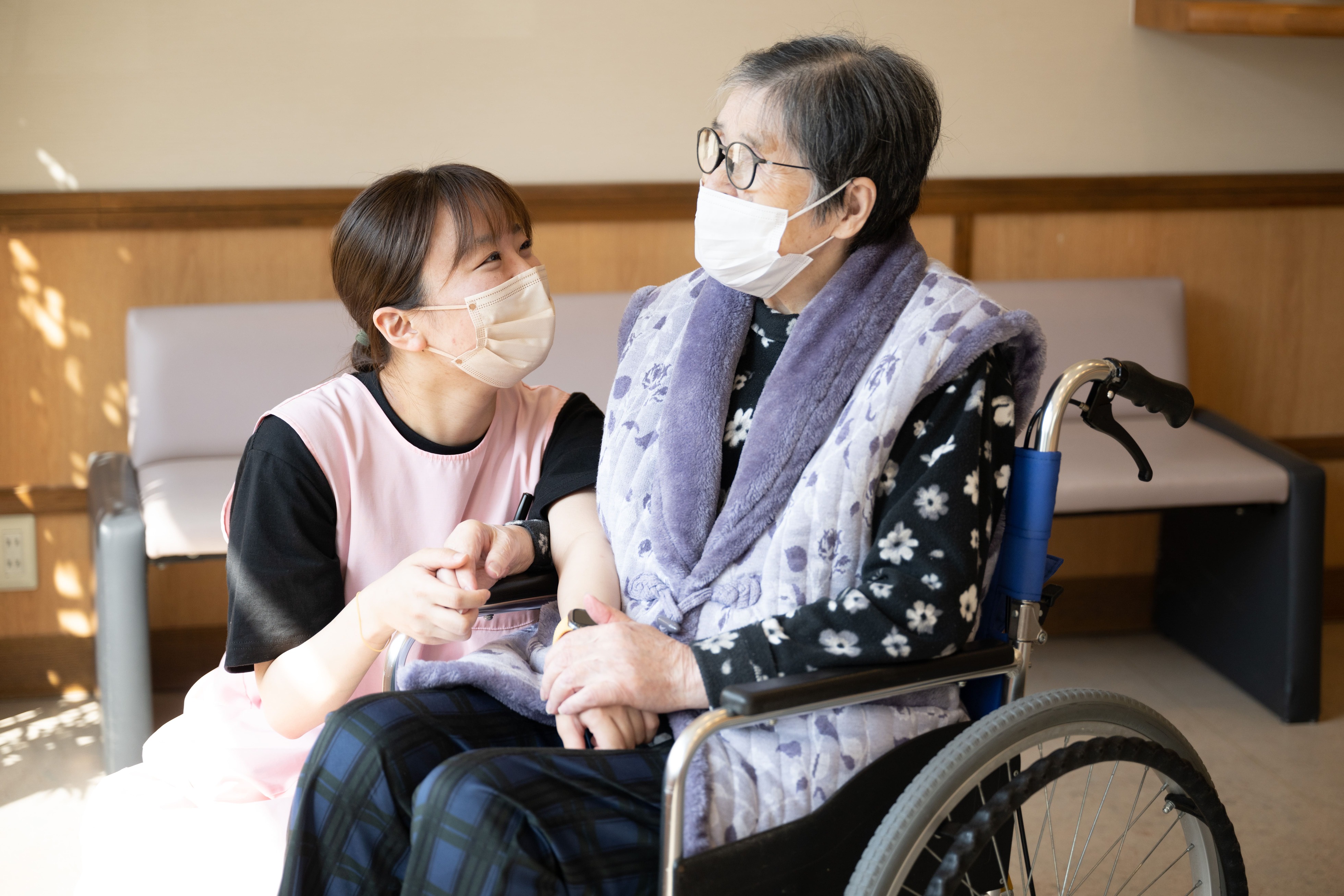 ご利用者様が安心して日常生活を送れるよう、食事や生活面でのサポート、日々の相談対応を行います。また、公用車を使用して病院や市役所への付き添い、事業所への送迎などのお手伝いもします。グループホーム内の清掃や、パソコンでの簡単な入力作業もあり、無理なく取り組める内容です。宿直業務は月に4回程度で、スタッフ同士で協力しながら対応しています。