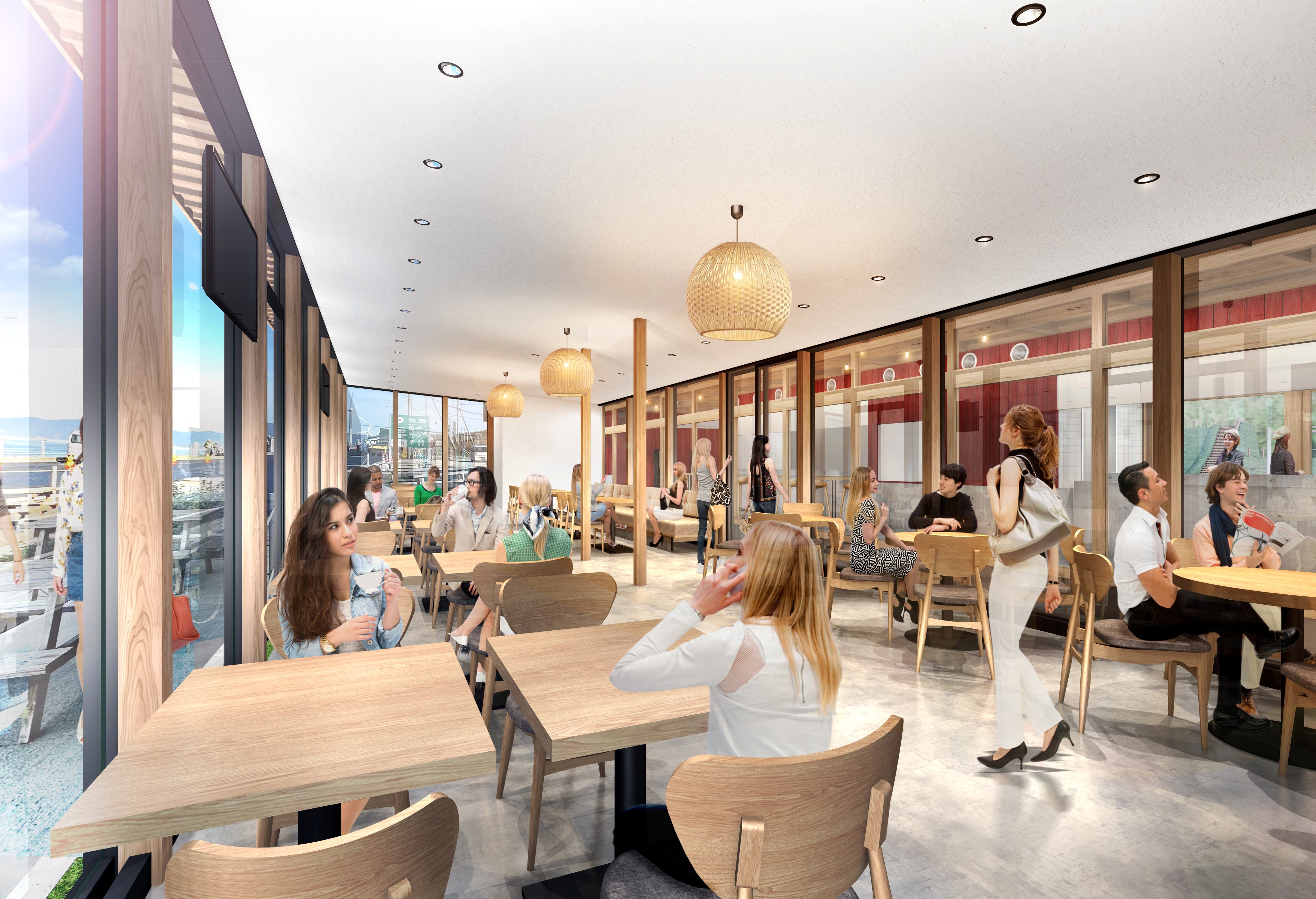 ●今回リニューアルオープンする「ピッツァ&カフェ」など飲食と物販を併設した複合エリアの総称です。