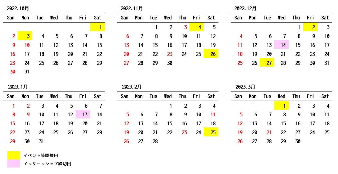 【学生向け】2022年10月~2023年3月 イベント等開催スケジュール