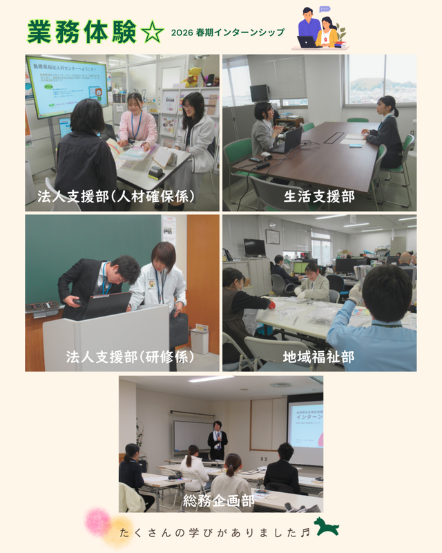 オリエンテーションや職場見学(入居しているいきいきプラザ島根を見学・名刺交換などの体験)